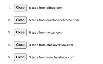 ด้วย Tab Closer การจัดการแท็บหลายๆ แท็บจากเว็บไซต์เดียวกันก็ง่ายขึ้น ไม่ว่าคุณจะมีแท็บ Stack Overflow ที่เปิดอยู่เป็นจำนวนมากหรือพบว่าตัวเองตกอยู่ในทะเลของแท็บ Twitter ส่วนขยายนี้จะให้คำตอบที่ง่ายดาย โดยคลิกเพียงครั้งเดียวคุณสามารถปิดแท็บทั้งหมดจากเว็บไซต์ที่กำหนดได้ ช่วยประหยัดเวลาและทำให้การเรียกดูเว็บไซต์ของคุณไม่วุ่นวาย